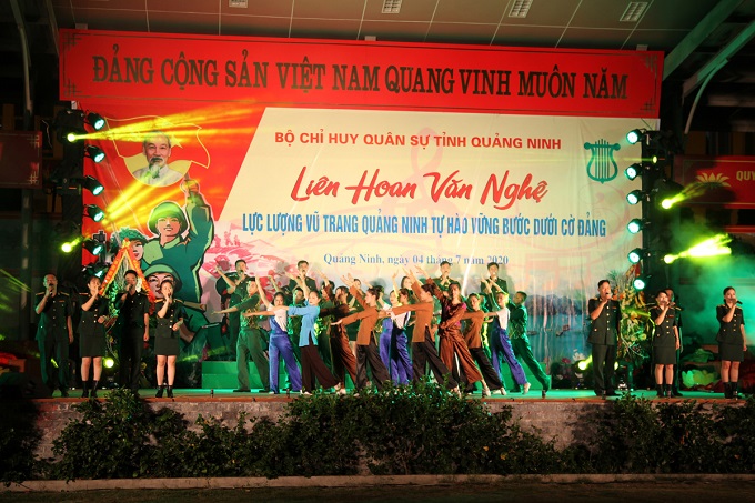| Liên hoan văn nghệ “Lực lượng vũ trang Quảng Ninh tự hào vững bước dưới cờ Đảng”. (Ảnh: Văn Đảm) |