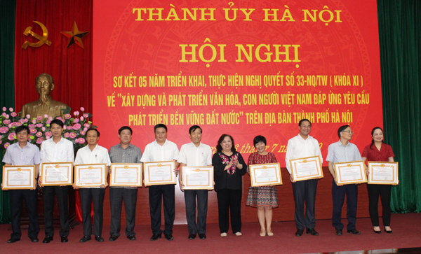 Tại Hội nghị, Ban Thường vụ Thành ủy Hà Nội đã khen thưởng 10 tập thể có thành tích xuất sắc trong việc thực hiện Nghị quyết 33./.