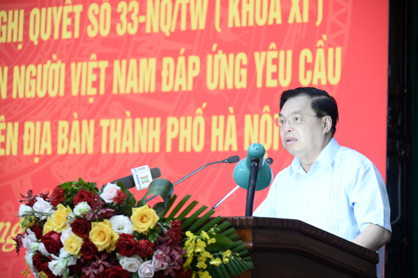 Phát biểu đề dẫn tại hội nghị, Trưởng ban Tuyên giáo Thành ủy Hà Nội Nguyễn Văn Phong nhấn mạnh: Hà Nội là nơi hội tụ, giao thoa, chắt lọc và lan tỏa các giá trị văn hóa của dân tộc, với bề dày văn hóa nghìn năm. Lịch sử Thủ đô Hà Nội về căn bản là “lịch sử quốc gia” thu nhỏ. Trải qua 7 nhiệm kỳ Đại hội sau đổi mới, Đảng bộ thành phố đã luôn quán triệt sâu sắc và vận dụng linh hoạt những chủ trương, tư tưởng của Đảng về phát triển văn hóa, xây dựng con người phù hợp với điều kiện kinh tế - xã hội của Thủ đô; nhấn mạnh việc xây dựng người Hà Nội không tách rời quan điểm của Đảng ta về xây dựng con người Việt Nam, nhưng lại mang những nét đặc thù riêng, tạo nền tảng vững chắc, động lực to lớn thúc đẩy phát triển kinh tế - xã hội của Thủ đô.Việc triển khai thực hiện Nghị quyết số 33 chính là sự tiếp nối trong thực hiện Nghị quyết Trung ương 5 (khóa VIII), có tầm quan trọng đặc biệt, nhất là vai trò và vị thế văn hóa của Hà Nội đòi hỏi phải thực sự tiêu biểu cho văn hóa Việt Nam.