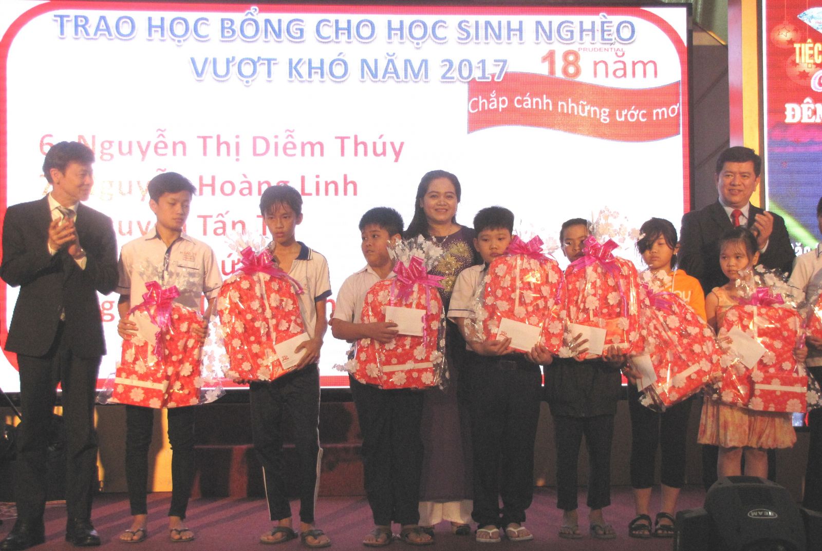 Ngoài ra, Văn phòng Tổng đại lý Prudential Tân An còn tặng quà và học bổng (mỗi suất 1,5 triệu đồng) cho 10 học sinh nghèo hiếu học và 10 gia đình có hoàn cảnh khó khăn trên địa bàn phường 2, TP.Tân An; tặng quà cho chị Phạm Thị Kim Sang, ngụ huyện Đức Huệ - có chồng mất vì tai nạn giao thông, đang làm công nhân cho một doanh nghiệp ở TP.Tân An để chăm lo cho hai người con nhỏ.