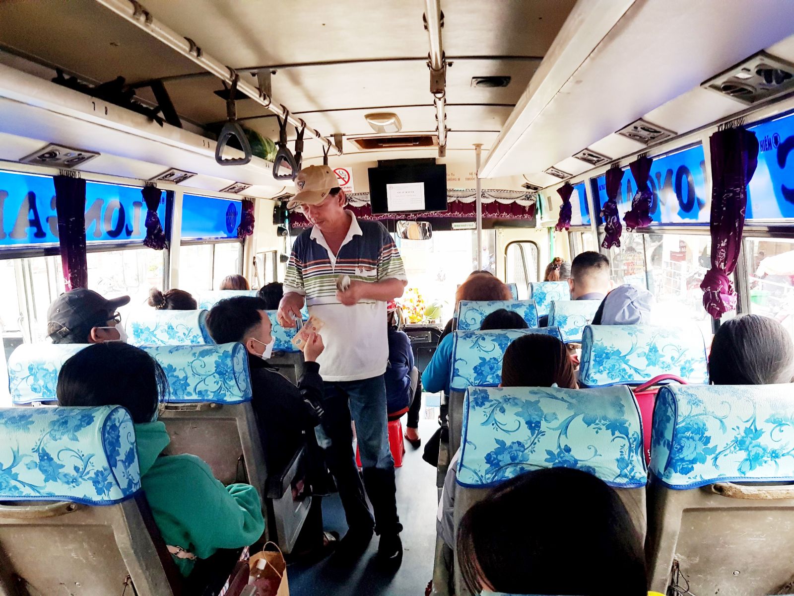 Một chuyến xe buýt rời bến Long An với lượng khách đầy xe