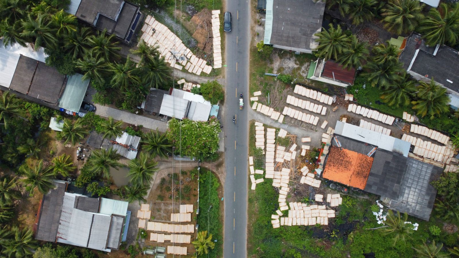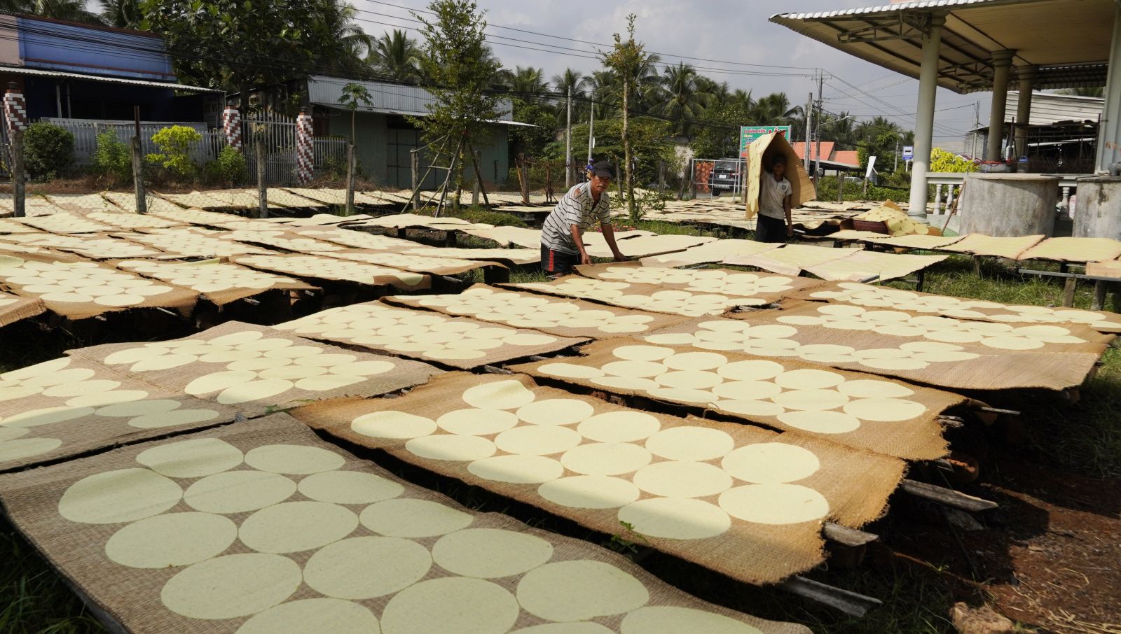 Cách đó không xa, tại xưởng bánh phồng mì của chị Nguyễn Thị Lan Ngọc, nhiều công nhân cũng thoăn thoắt đôi tay với những công đoạn làm bánh. Đây là một trong những xưởng bánh quy mô lớn của làng nghề. Theo chị Ngọc, mỗi ngày, xưởng cho ra lò khoảng 10.000 chiếc bánh. Bánh chủ yếu được xuất đi TP.HCM và một số khu công nghiệp ở miền Đông để tiêu thụ.