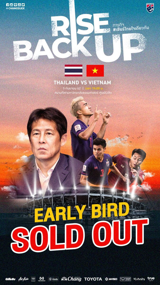 Trước đó, ngày mở bán đầu tiên (05/8) dành cho các CĐV của Thái Lan thông qua trang web chính thức Thai Ticket Major đã nhanh chóng được mua hết trong ngày. Đợt bán ngày 05/8 có số lượng vé gần một nửa tổng số vé của trận đấu nói trên. Theo FAT, cùng với số vé mời cho nhà tài trợ, tổng cộng đã bán hết 9.687 vé trong đợt đầu tiên.
