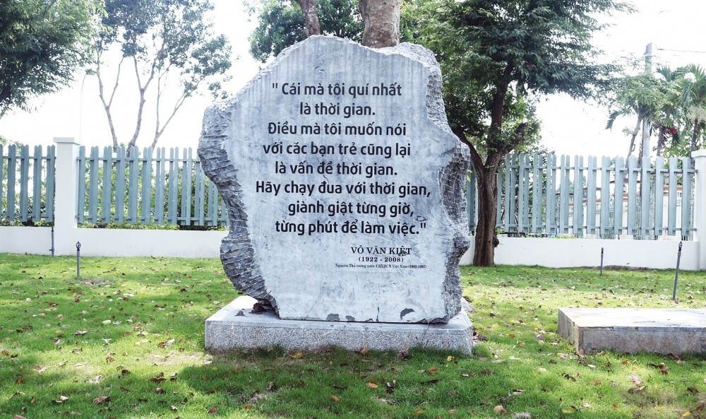 “Cái tôi quý nhất là thời gian. Điều mà tôi muốn nói với các bạn trẻ cũng lại là vấn đề thời gian. Hãy chạy đua với thời gian, giành giật từng giờ, từng phút để làm việc” - những lời nói của cố Thủ tướng Võ Văn Kiệt tại khu tưởng niệm.