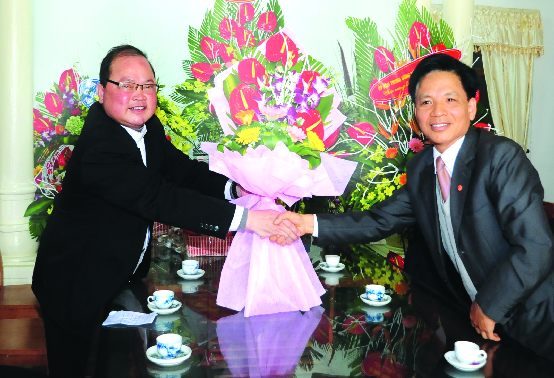 | Linh mục Trần Đức Hoàn (bên trái) và ông Đặng Phúc Giao, Phó Chủ tịch Ủy ban MTTQ Việt Nam tỉnh Nam Định thường xuyên duy trì quan hệ hài hòa để triển khai các cuộc vận động |