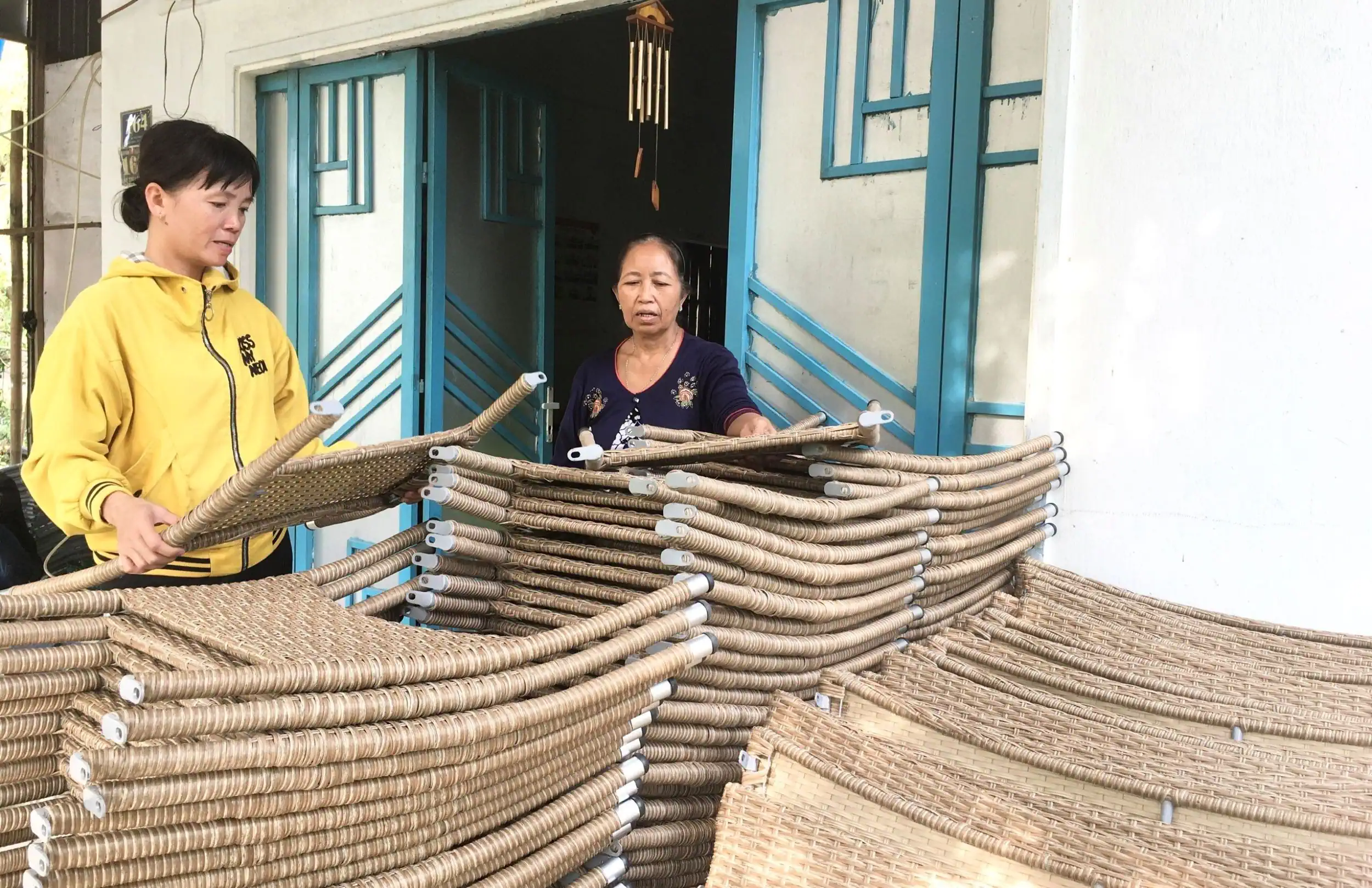 Mô hình tổ đan dây nhựa ở xã Xuân Thắng, huyện Thới Lai, giúp người dân có việc làm, thu nhập lúc nông nhàn.