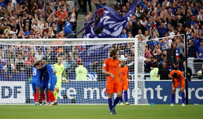 Nỗi thất vọng của các cầu thủ Hà Lan (áo cam) sau khi để thua đậm Pháp. Ảnh: Reuters