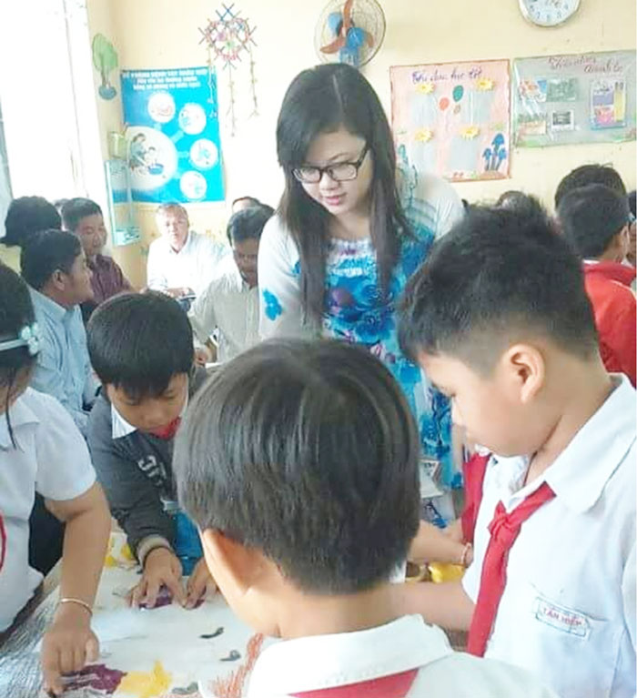 Cô chia sẻ: "Lúc về nhận nhiệm sở, cơ sở vật chất của trường còn thiếu thốn, việc đi lại rất khó khăn, phải đi bằng xuồng. Đến các điểm trường để dạy, phải đi trên những con đường đất đỏ, nắng bụi, mưa lầy, qua những cây cầu tạm rất nguy hiểm. Nhưng với lòng yêu nghề, thương học sinh, tôi đã vượt qua khó khăn, gian khổ để mang con chữ đến học sinh vùng biên".