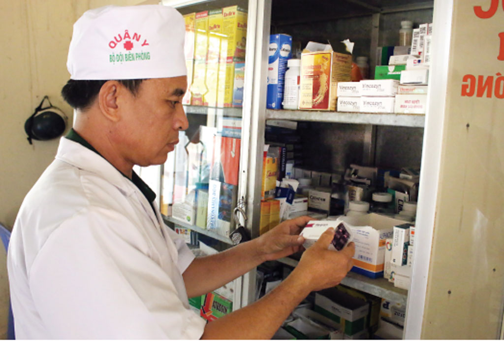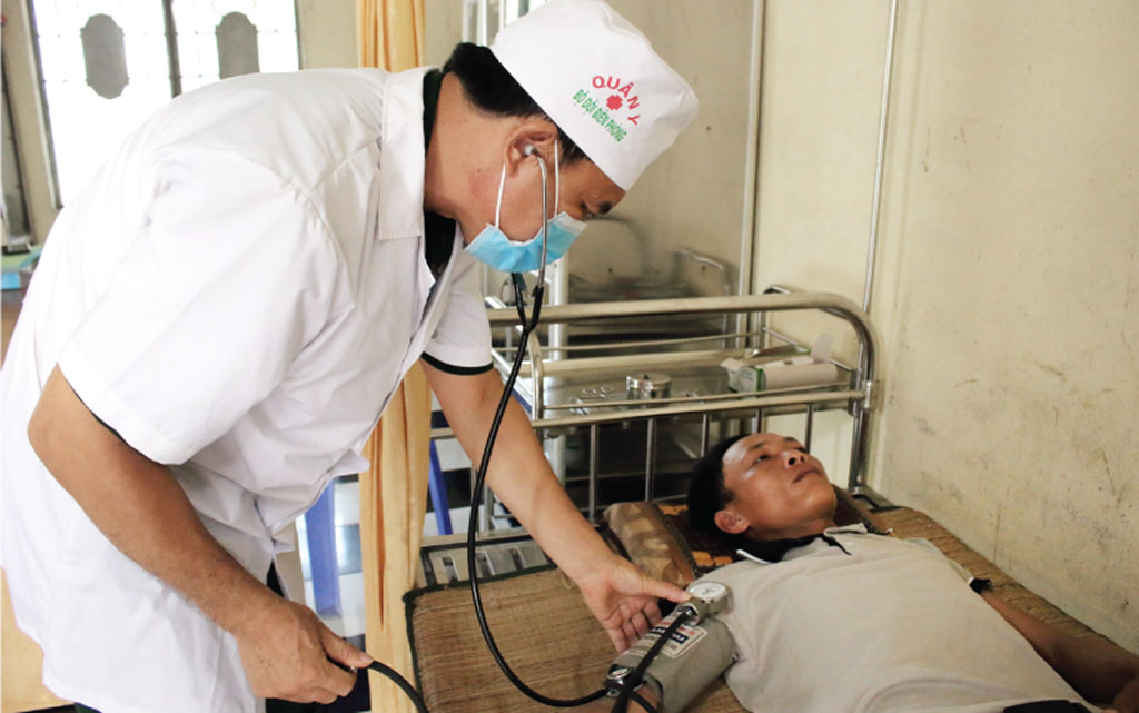 Thiếu tá, y sĩ Nguyễn Duy Thuần khám bệnh cho người dân