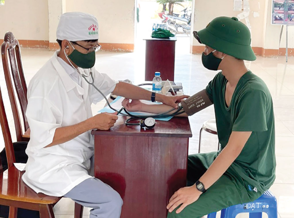 Thiếu tá, y sĩ Kiều Thành Phê khám phúc tra sức khỏe cho tân binh