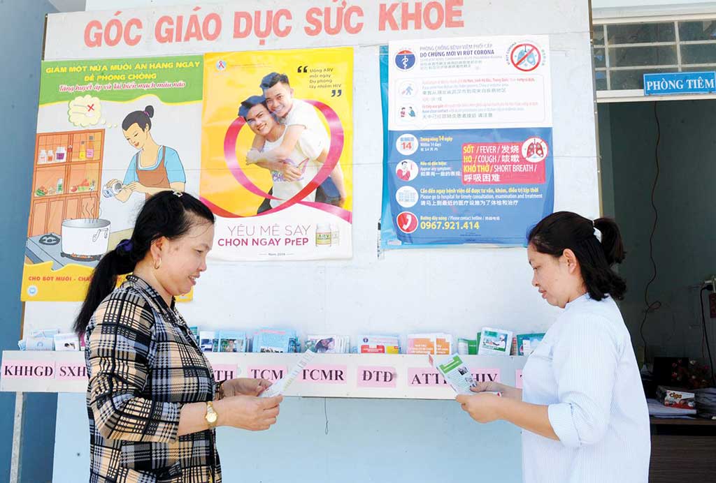 Góc giáo dục sức khỏe được bố trí nơi dễ nhìn thấy nhằm cung cấp kiến thức cho người dân