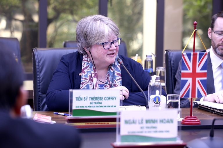 Bộ trưởng Coffey cũng đã có cuộc thảo luận với Phó Thủ tướng, Bộ trưởng Bộ Tài nguyên và Môi trường Trần Hồng Hà về tăng cường hợp tác chống tác động của biến đổi khí hậu. Chính phủ Vương quốc Anh hỗ trợ Việt Nam trong lĩnh vực chống biến đổi khí hậu và bảo vệ đa dạng sinh học với hơn 17.8 triệu Bảng Anh hỗ trợ thông qua 7 dự án hỗ trợ phát triển chính thức. Các dự án bao gồm lâm nghiệp và thị trường các bon, thúc đẩy mô hình canh tác thuỷ hải sản và mô hình sinh kế bền vững, giảm rác thải nhựa, bảo vệ đa dạng sinh học, và đặc biệt là Chương trình Đối tác Chuyển dịch Năng lượng Công bằng (JETP), với mục tiêu giúp Việt Nam đạt được các cam kết về khí hậu và phát thải ròng bằng 0 vào năm 2050.