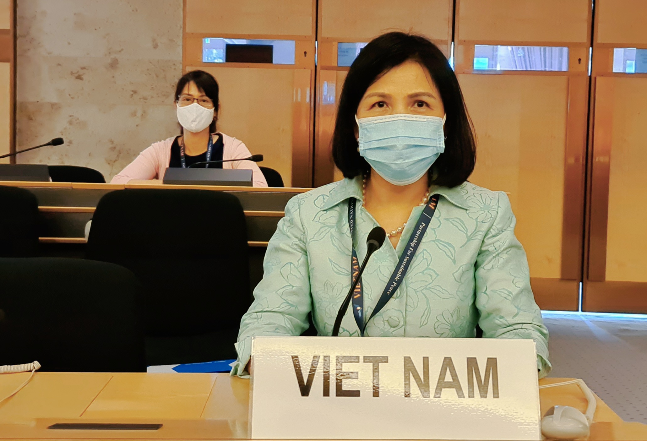 Phát biểu tại phiên Đối thoại về Báo cáo cập nhật của Cao ủy Nhân quyền về tác động của đại dịch Covid-19 đối với quyền con người, Đại sứ Lê Thị Tuyết Mai tái khẳng định Việt Nam cam kết bảo vệ và thúc đẩy quyền con người trong bối cảnh đại dịch Covid-19, ủng hộ hợp tác quốc tế và cách tiếp cận đa phương nhằm ứng phó hiệu quả với đại dịch và phục hồi hậu đại dịch; nhấn mạnh các biện pháp của Việt Nam chống dịch một cách cân bằng, hiệu quả và chi phí thấp trong thời gian qua đã đem lại những kết quả quan trọng, một mặt góp phần kiểm soát dịch bệnh, mặt khác bảo đảm quá trình phục hồi và thúc đẩy phát triển kinh tế.