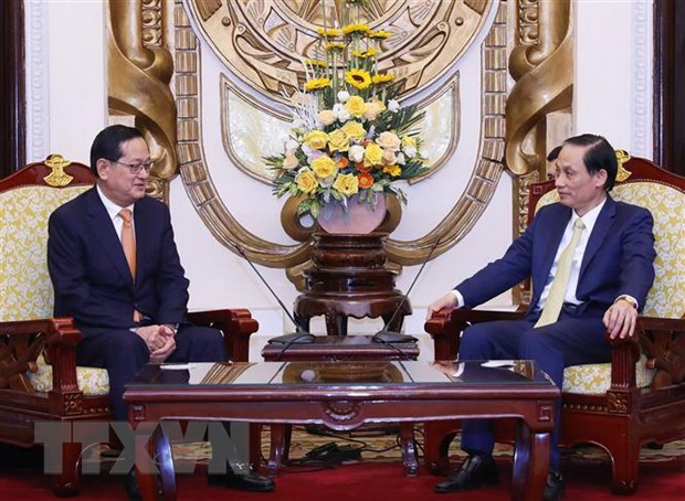 Thứ trưởng Bộ Ngoại giao Lê Hoài Trung và Quốc Vụ khanh Bộ Nội vụ Campuchia Sok Phal. (Ảnh: Lâm Khánh/TTXVN)