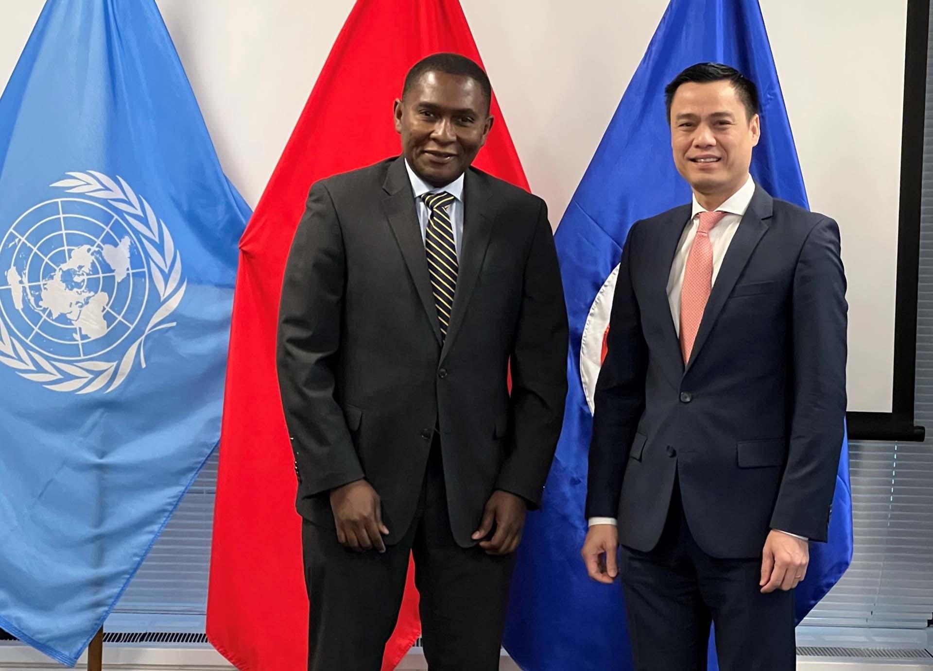 | Đại sứ Đặng Hoàng Giang và Cố vấn đặc biệt của Tổng thư ký LHQ về hành động khí hậu, Trợ lý Tổng thư ký Selwin Chalres Hart. |