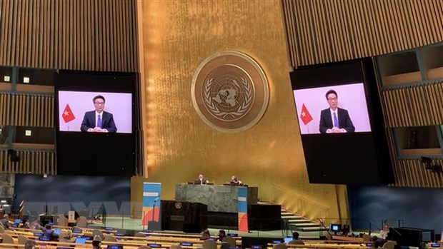 Đại sứ Đặng Đình Quý, Trưởng phái đoàn đại diện Việt Nam tại Liên hợp quốc, tham dự cuộc họp. (Ảnh: Hữu Thanh/TTXVN)
