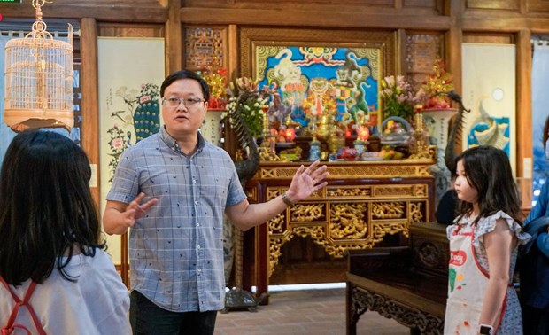 Nghệ sỹ Nguyễn Thế Sơn trong một buổi giao lưu nghệ thuật với thiếu nhi. Anh là người luôn trăn trở với việc gìn giữ những giá trị xưa cũ. (Ảnh: NVCC)