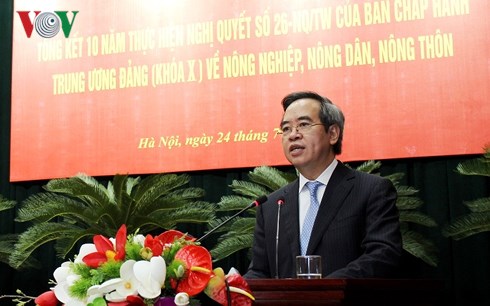 Phát biểu tại hội nghị tổng kết 10 năm thực hiện Nghị quyết 26 về Tam nông, Ủy viên Bộ Chính trị Nguyễn Văn Bình nêu rõ, kết quả của hội nghị cùng với kết quả tổng kết Nghị quyết 26 về Tam nông của các Bộ, ngành, địa phương là cơ sở quan trọng để Ban Chỉ đạo Trung ương tổng hợp phục vụ xây dựng Báo cáo tổng kết Nghị quyết 26 về Tam nông trình Bộ Chính trị vào quý IV năm nay.