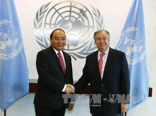 Thủ tướng Nguyễn Xuân Phúc khẳng định: là thành viên có trách nhiệm của Liên hợp quốc, Việt Nam đã và đang đóng góp tích cực vào công việc chung của Liên hợp quốc, trong đó có việc vừa hoàn thành nhiệm kỳ thành viên Hội đồng Nhân quyền, đang đảm nhiệm vai trò thành viên Hội đồng Kinh tế Xã hội và Hội đồng chấp hành UNESCO và dự kiến sẽ ứng cử vào vị trí Ủy viên không thường trực Hội đồng Bảo an nhiệm kỳ 2020-2021. Thủ tướng đề nghị Liên hợp quốc tăng cường hỗ trợ Việt Nam trong việc triển khai Chương trình nghị sự 2030 về phát triển bền vững, Thỏa thuận Paris về biến đổi khí hậu và Khung hành động Sendai về giảm rủi ro thiên tai; nhấn mạnh Việt Nam đã quyết định là một trong mười nước đi đầu thực hiện sáng kiến của Liên hợp quốc về ứng phó với En Ni-nô và La Ni-na.