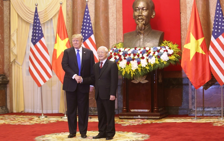 Tổng thống Donald Trump bày tỏ vui mừng được gặp lại Tổng Bí thư, Chủ tịch nước Nguyễn Phú Trọng, bày tỏ ấn tượng về lòng hiếu khách của người dân và sự phát triển rất ấn tượng của Việt Nam. Tổng thống Donald Trump cảm ơn Việt Nam đã hỗ trợ rất chu đáo cho Cuộc gặp Thượng đỉnh Hoa Kỳ - Triều Tiên mặc dù thời gian gấp rút; cho rằng việc tổ chức Cuộc gặp Thượng đỉnh lần này tại Việt Nam có ý nghĩa quan trọng vì Việt Nam là một minh chứng tốt về những thành tựu có thể đạt được nếu có tư duy đúng. Tổng thống Donald Trump nhấn mạnh Hoa Kỳ sẽ tiếp tục hợp tác với Việt Nam thúc đẩy quan hệ Đối tác toàn diện phát triển thực chất và hiệu quả hơn trong thời gian tới.