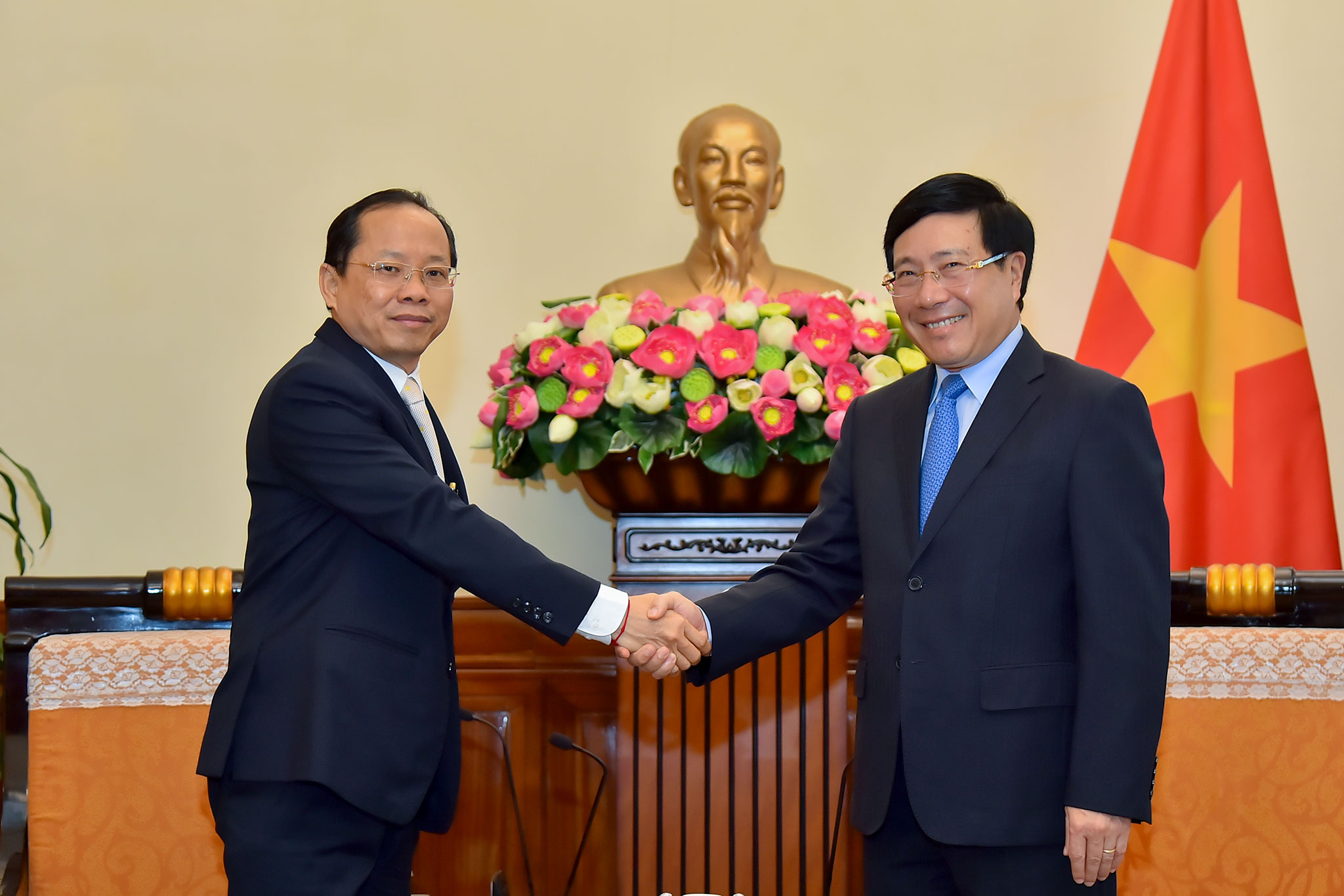 | Phó Thủ tướng, Bộ trưởng Ngoại giao Phạm Bình Minh và Đại sứ Vương quốc Campuchia Chay Na-vút |