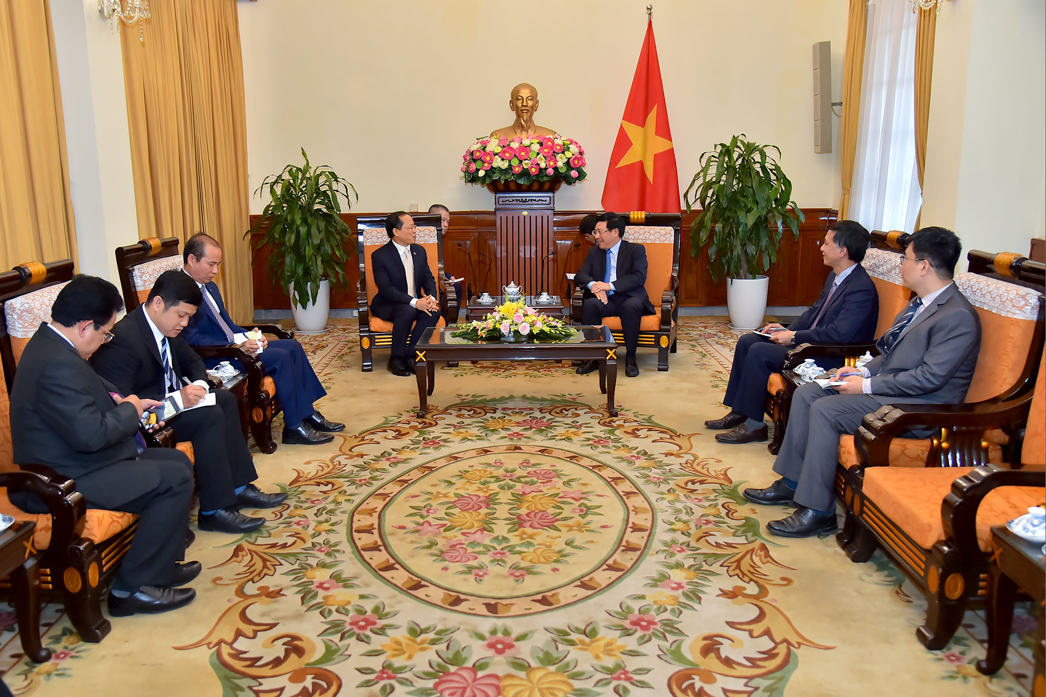 Tại buổi tiếp, Phó Thủ tướng, Bộ trưởng Ngoại giao Phạm Bình Minh nhấn mạnh, trên cơ sở quan hệ hợp tác hữu nghị truyền thống lâu đời giữa hai nước láng giềng, Việt Nam coi trọng và ưu tiên tăng cường hợp tác với Campuchia trên tất cả các lĩnh vực. Bày tỏ ấn tượng về kết quả Campuchia đã đạt được đến nay trong việc kiểm soát tốt dịch bệnh COVID-19, Phó Thủ tướng, Bộ trưởng đề nghị cơ quan chức năng hai nước tiếp tục phối hợp chặt chẽ, bảo đảm thông thương hàng hóa trên toàn tuyến biên giới; trước mắt tạo điều kiện để học sinh, sinh viên Campuchia sớm được trở lại Việt Nam học tập phù hợp với các quy định về phòng chống dịch của hai nước.