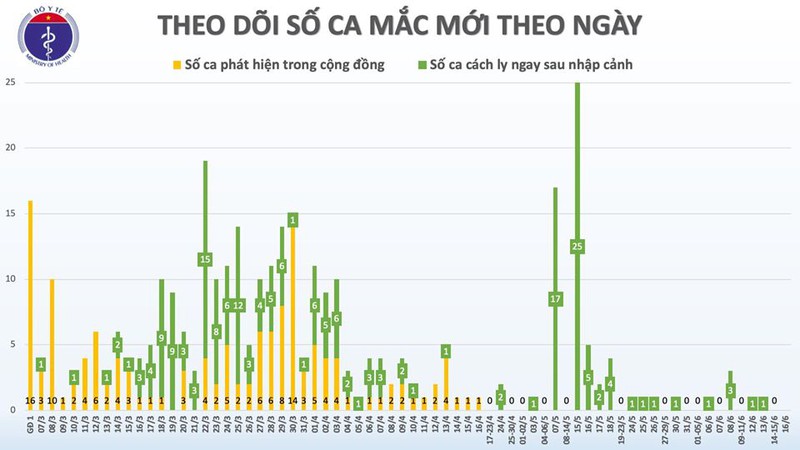 Tính từ 6h ngày 16/4 đến 6h ngày 16/6: 61 ngày Việt Nam không có ca lây nhiễm trong cộng đồng.