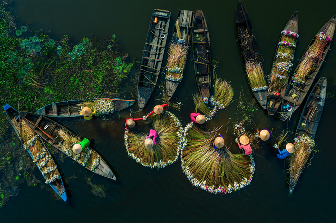 | Tác phẩm "Hái hoa súng" trong bộ ảnh "Việt Nam nhìn từ trên cao". |