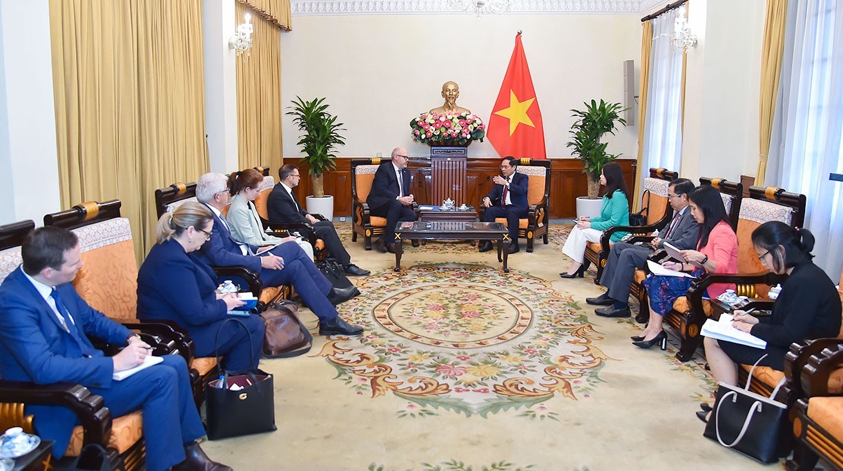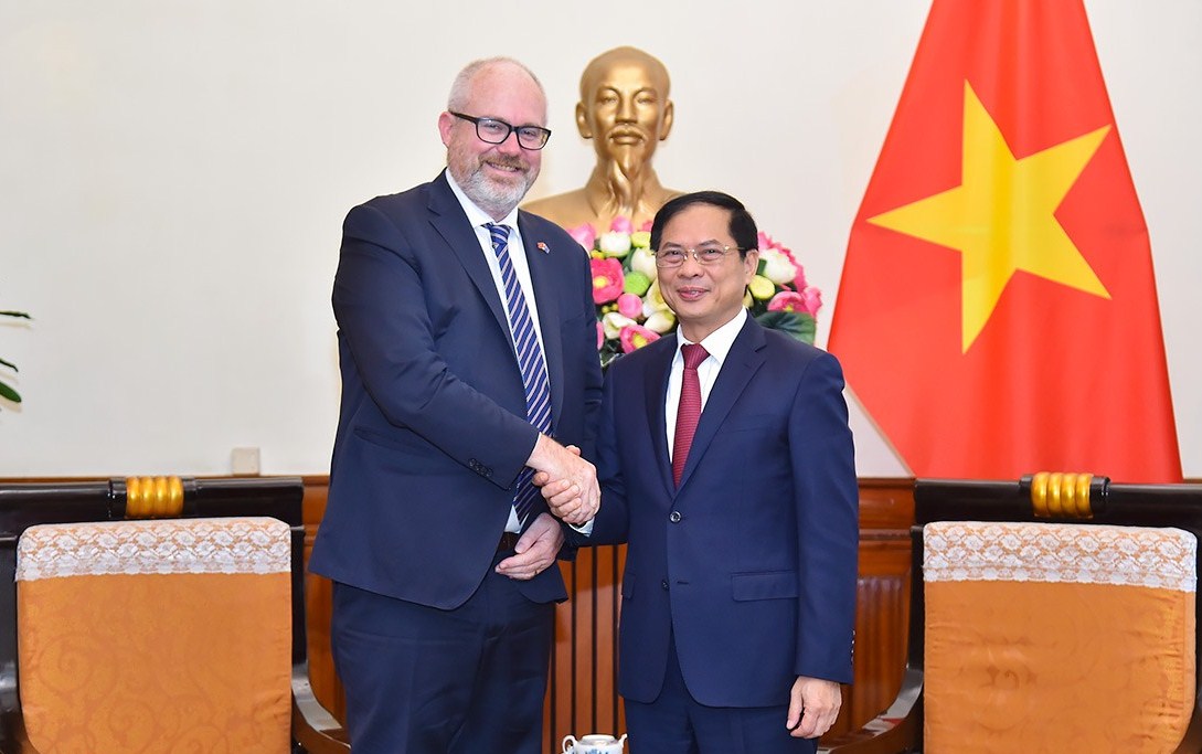 | Bộ trưởng Bộ Ngoại giao Bùi Thanh Sơn tiếp Thượng nghị sỹ, đồng Bộ trưởng phụ trách thương mại và sản xuất Australia Tim Ayres. |