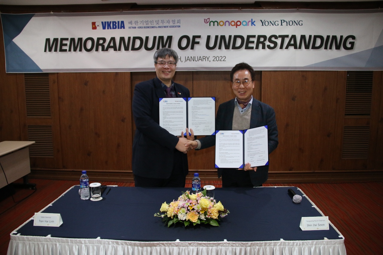 Ngày 20/1, tại tỉnh Kangwon (Hàn Quốc), Hiệp hội Doanh nhân & Đầu tư Việt Nam – Hàn Quốc (VKBIA) và Tập đoàn Yongpyung Resort (Hàn Quốc) chính thức ký kết Biên bản ghi nhớ hợp tác toàn diện trong thời gian 3 năm, cùng nhau đồng hành trên nhiều lĩnh vực.