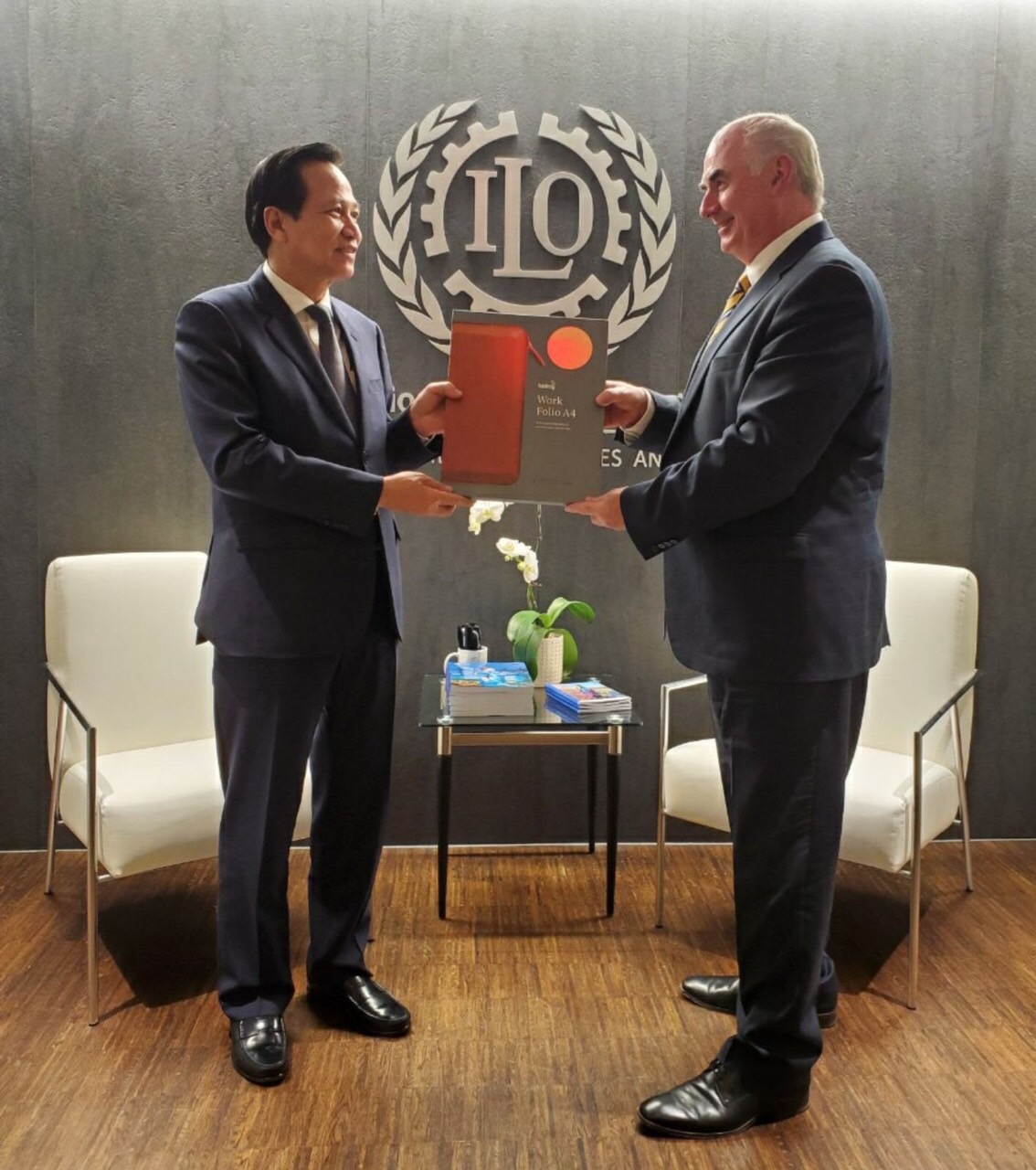 Bộ trưởng cũng thông tin những thành tựu của Việt Nam trong việc giảm thiểu lao động trẻ em, tăng cường an toàn vệ sinh lao động, thúc đẩy và bảo vệ quyền của lao động di cư, lao động là người khuyết tật, phụ nữ và các nhóm yếu thế khác. Bộ trưởng đề nghị hai bên sẽ mở rộng hợp tác trên cơ sở tiếp tục thực hiện những dự án hỗ trợ kỹ thuật hiện nay như nâng cao năng lực thực thi pháp luật lao động, xây dựng quan hệ lao động hài hòa, ổn định và tiến bộ và đặc biệt tập trung vào các ưu tiên của Việt Nam trong những năm tới như phát triển nguồn nhân lực chất lượng cao, cải cách hệ thống bảo hiểm xã hội, phát triển thị trường lao động.