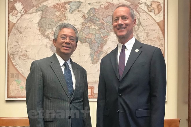 Đại sứ Việt Nam tại Hoa Kỳ Phạm Quang Vinh gặp Hạ nghị sỹ Mac Thornberry, Chủ tịch Ủy ban Quân lực Hạ viện. (Ảnh: Đoàn Hùng/Vietnam+)