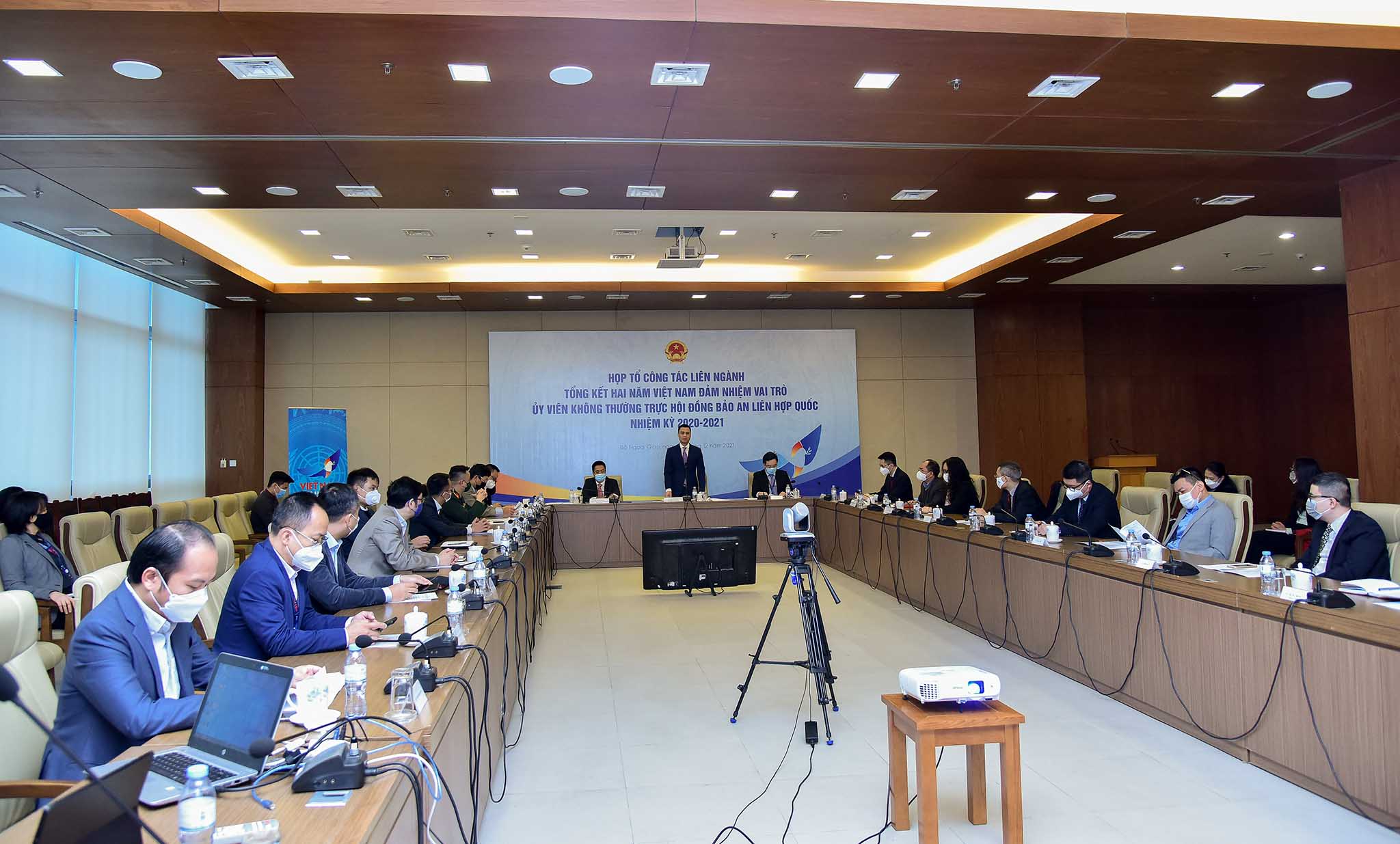 Nhằm chuẩn bị cho Hội nghị Tổng kết hai năm tham gia của Việt Nam tại HĐBA, ngày 28/12/2021, Tổ công tác Liên ngành (TCTLN) về HĐBA đã tổ chức phiên họp cuối cùng do Thứ trưởng Bộ Ngoại giao Đặng Hoàng Giang, Tổ trưởng Tổ Công tác, chủ trì để trao đổi, đánh giá một cách thực chất về tình hình, kết quả tham gia HĐBA hai năm qua. Cuộc họp có sự tham dự của đại diện lãnh đạo Ban Đối ngoại Trung ương Đảng, Ban Tuyên giáo Trung ương, Bộ Công an, Bộ Quốc phòng, Ủy ban Đối ngoại Quốc hội cùng nhiều đơn vị chuyên môn của Bộ Ngoại giao.
