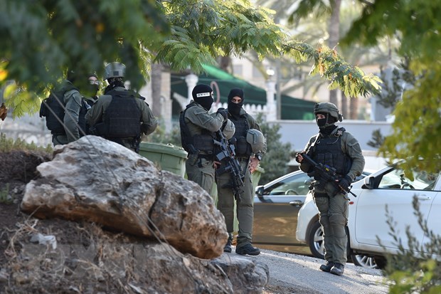 Cảnh sát Israel truy tìm các tù nhân Palestine vượt ngục tại Nau'ra, ngày 7/9/2021. (Ảnh: THX/TTXVN)