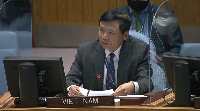 | Đại sứ Đặng Đình Quý, Trưởng Phái đoàn Việt Nam tại LHQ phát biểu tại cuộc họp. |