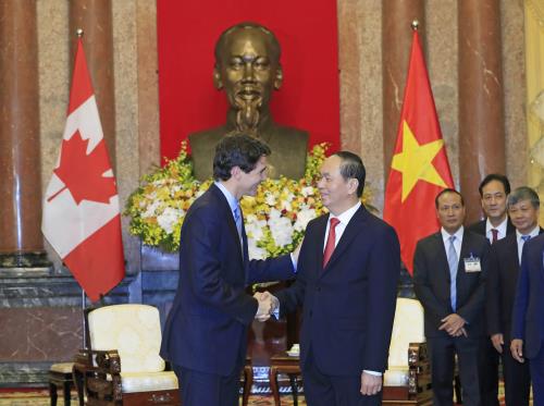 Chủ tịch nước mong muốn hai nước tăng cường phối hợp thúc đẩy các sáng kiến trong những lĩnh vực khác mà hai bên cùng quan tâm như tăng trưởng toàn diện, an ninh lương thực, biến đổi khí hậu, trao quyền cho phụ nữ trong lĩnh vực kinh tế. Chủ tịch nước đề nghị hai bên tích cực hợp tác tại các diễn đàn đa phương và tổ chức quốc tế như: Liên hợp quốc, APEC, ASEAN, Tổ chức Pháp ngữ... Chủ tịch nước đánh giá cao chính sách đối ngoại chủ động, tích cực của Canada theo hướng tăng cường gắn kết với thế giới và khu vực Châu Á-Thái Bình Dương, coi trọng quan hệ với ASEAN; mong muốn Canada tiếp tục thể hiện cam kết chính trị mạnh mẽ, tham gia đóng góp vào cấu trúc khu vực cũng như ủng hộ vai trò trung tâm của ASEAN ở khu vực.
