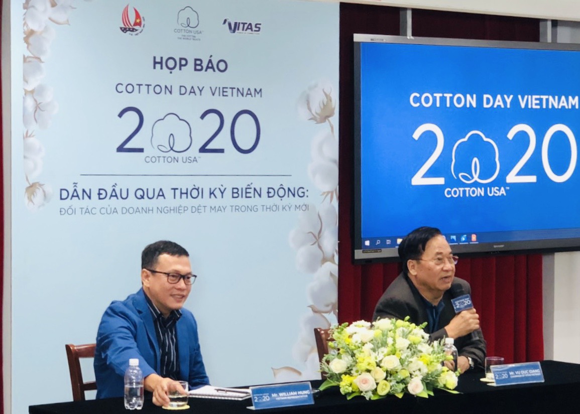 Chiều 14/9, tại TP Hồ Chí Minh, Hiệp hội Dệt may Việt Nam (VITAS) phối hợp cùng Hiệp hội Bông Mỹ (CCI) tổ chức họp báo giới thiệu Hội thảo trực tuyến Cotton Day 2020 Vietnam - Ngày hội bông lớn nhất trong năm.