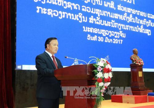 Sáng 30/3 tại thủ đô Viêng Chăn, đã diễn ra Hội thảo Cấp cao về quản lý 3 đơn vị ngành dọc thuộc Bộ Tài chính gồm: thuế, hải quan, kho bạc, dưới sự đồng chủ trì của Phó Thủ tướng, Bộ trưởng Tài chính Lào Somdy Duangdy (Xổm-đy Đuông-đy) và Bộ trưởng Tài chính Việt Nam Đinh Tiến Dũng.