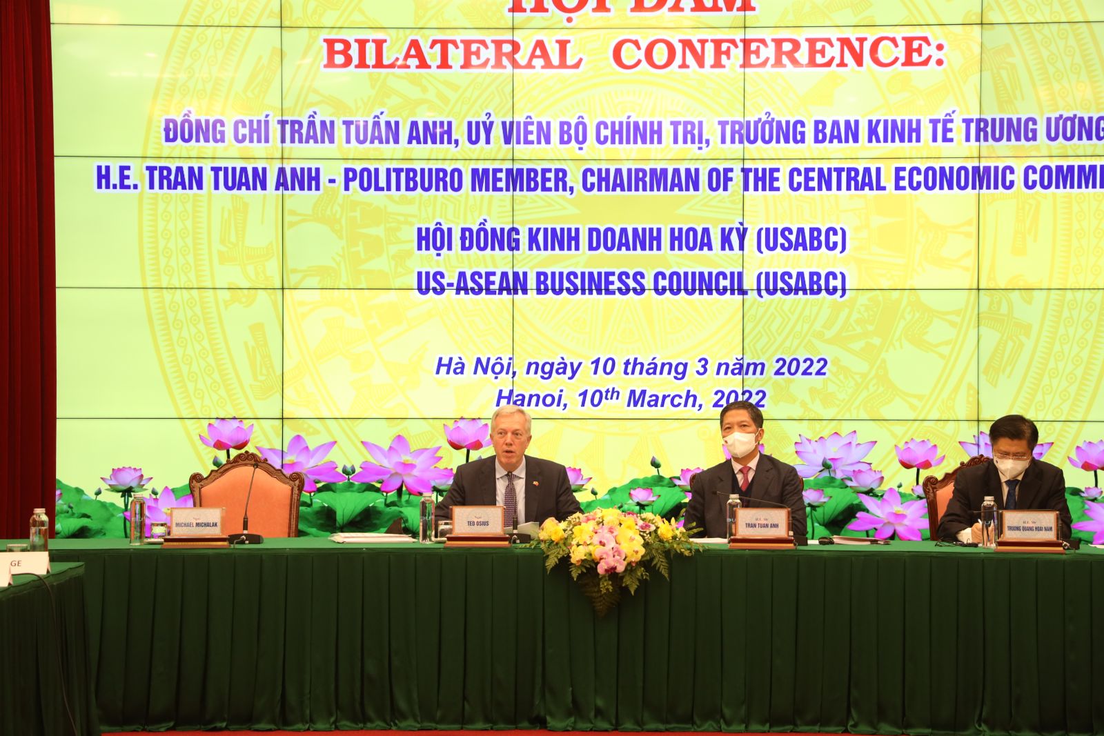 Ngày 10/03/2022, tại trụ sở Trung ương Đảng, đồng chí Trần Tuấn Anh, Ủy viên Bộ Chính trị, Trưởng Ban Kinh tế Trung ương đã tiếp và làm việc với Đoàn Hội đồng kinh doanh Hoa Kỳ - ASEAN (USABC) với đại diện của 28 tập đoàn doanh nghiệp hàng đầu Hoa Kỳ.