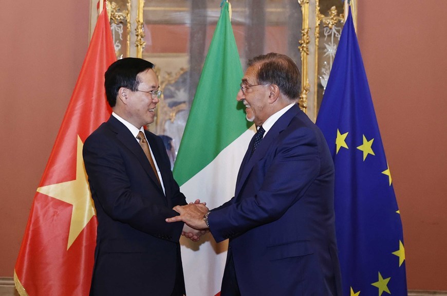 Trong khuôn khổ chuyến thăm cấp Nhà nước tới Italia, chiều ngày 26/7/2023, tại Roma, Chủ tịch nước Võ Văn Thưởng đã gặp Chủ tịch Thượng viện Italia Ignazio La Russa.