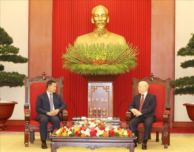 | Tổng Bí thư Nguyễn Phú Trọng tiếp Thủ tướng, Phó Chủ tịch Đảng Nhân dân Campuchia (CPP) Hun Manet |
