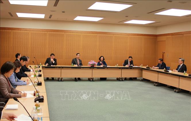 | Thường trực Ban Bí thư, Trưởng Ban Tổ chức Trung ương Trương Thị Mai làm việc với Chủ tịch Thượng viện Otsuji Hidehisa (Ảnh: Xuân Giao/TTXVN) |