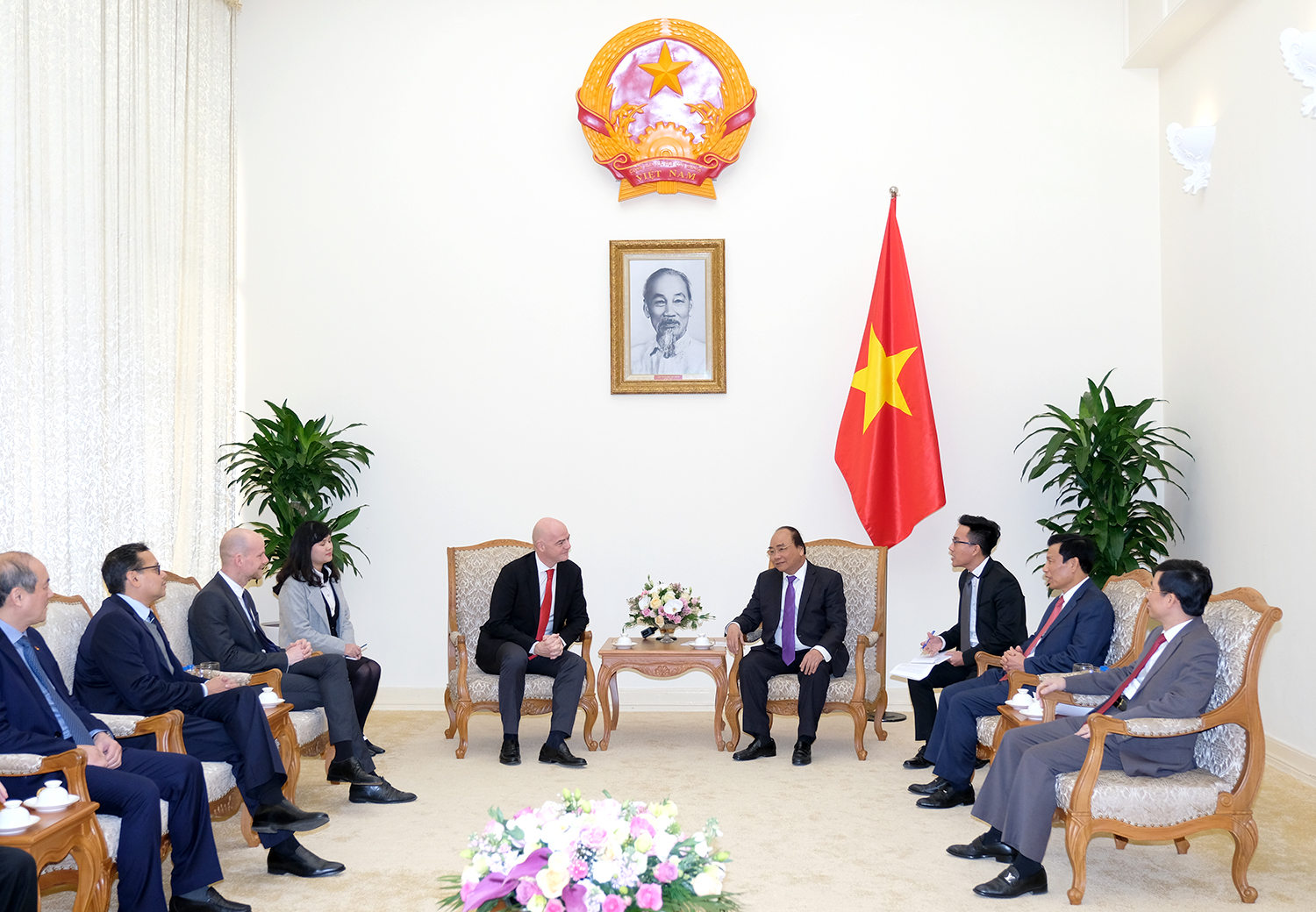 Thủ tướng đánh giá cao sự hỗ trợ của FIFA cho Việt Nam với nhiều dự án cụ thể về đào tạo, phát triển tài năng bóng đá trẻ, bóng đá phong trào, bóng đá nữ, đào tạo trọng tài, đóng góp quan trọng cho sự phát triển bền vững và những thành tích của bóng đá Việt Nam đã đạt được thời gian qua. Một số thành tích nổi bật của các đội tuyển trẻ của Việt Nam trong thời gian vừa qua là minh chứng cho kết quả hợp tác hiệu quả với FIFA. Việt Nam mong muốn FIFA tiếp tục hỗ trợ các chương trình đào tạo huấn luyện viên, trọng tài, phát triển bóng đá trẻ, cập nhật kiến thức bóng đá tiên tiến cho sự phát triển bóng đá chuyên nghiệp ở Việt Nam.