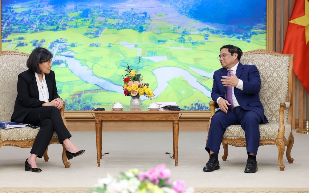 Ghi nhận ý kiến của Đại diện Thương mại Hoa Kỳ Katherine Tai, Thủ tướng Chính phủ Phạm Minh Chính khẳng định Việt Nam mong muốn thúc đẩy quan hệ Đối tác toàn diện hai nước ngày càng thực chất, ổn định, đi vào chiều sâu trên cơ sở tôn trọng độc lập, chủ quyền, toàn vẹn lãnh thổ và thể chế chính trị của nhau, góp phần vào hoà bình, ổn định, hợp tác và phát triển của khu vực và thế giới. Thủ tướng đề nghị các cơ quan hai nước thúc đẩy mạnh mẽ hơn nữa quan hệ kinh tế, thương mại – đầu tư, mở rộng hợp tác trong các lĩnh vực nhiều tiềm năng như chuyển đổi số, chuyển đổi xanh, nông nghiệp bền vững, chuyển đổi năng lượng và bảo vệ môi trường, cùng giải quyết các vấn đề tồn đọng trong quan hệ kinh tế thương mại, xem xét thoả đáng các vấn đề liên quan đến phòng vệ thương mại, điều tra chống bán phá giá trên cơ sở bảo đảm cân bằng, bình đẳng, cùng có lợi, tạo điều kiện thuận lợi cho các mặt hàng xuất khẩu của Việt Nam vào thị trường Hoa Kỳ.