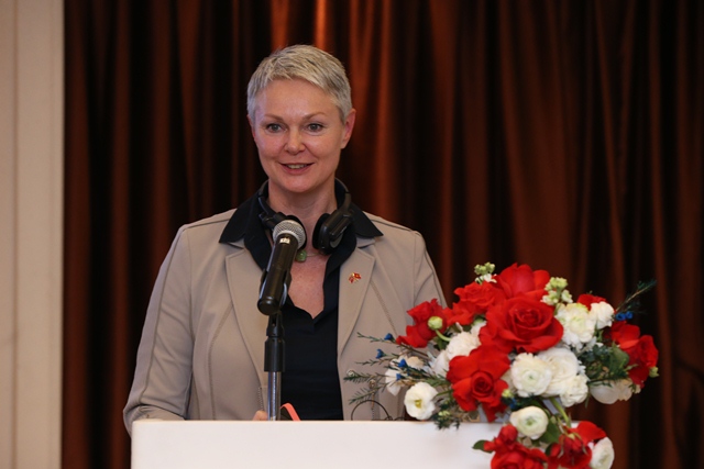| Đại sứ Na Uy tại Việt Nam - bà Hilde Solbakken chia sẻ Na Uy tự hào về quan hệ hợp tác với Việt Nam trong lĩnh vực thủy sản. (Ảnh: KT) |