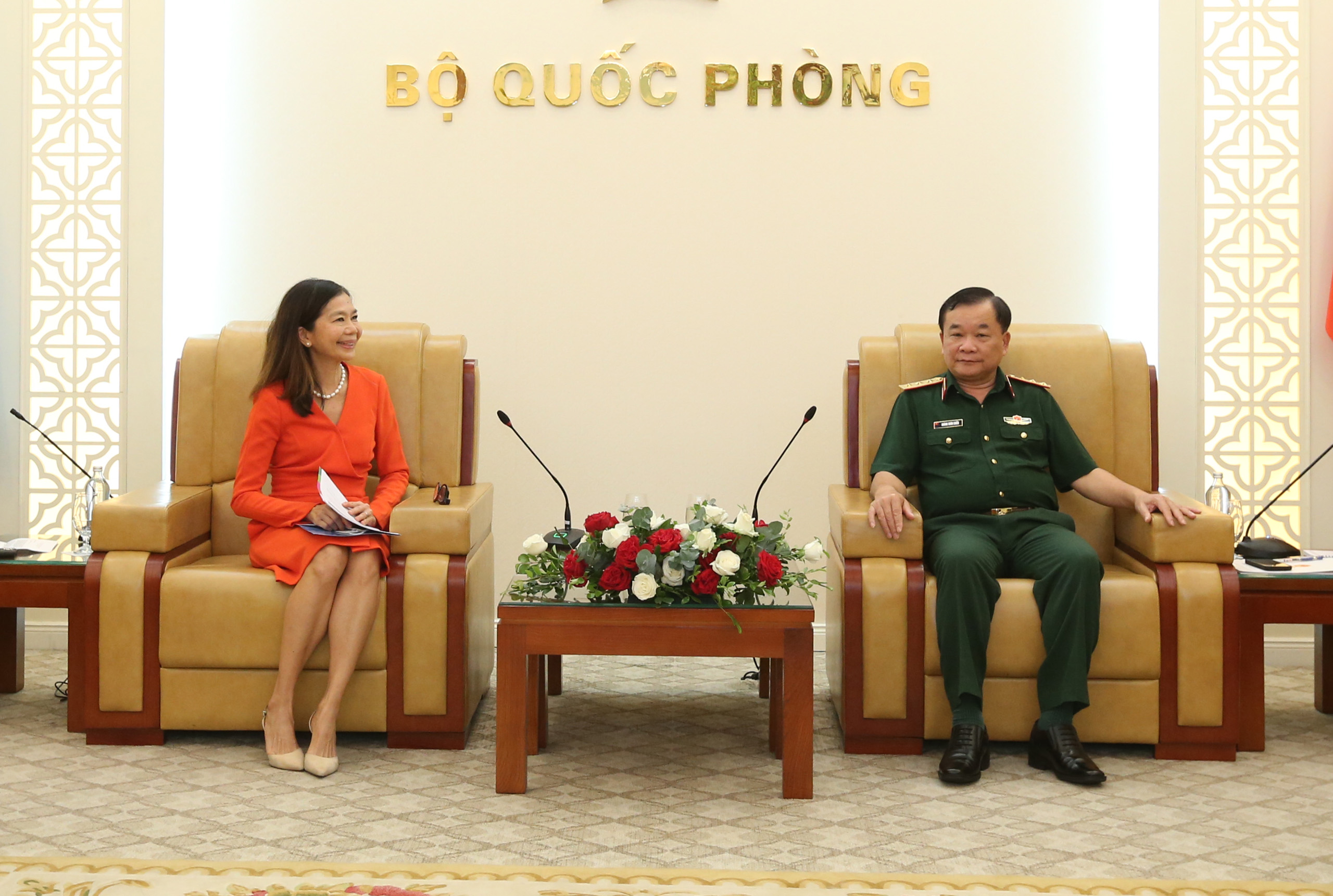 | Thượng tướng Hoàng Xuân Chiến và Bà Pauline Tamesis, Điều phối viên Thường trú Liên hợp quốc tại Việt Nam. |