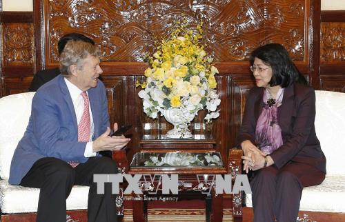 Phó Chủ tịch nước Đặng Thị Ngọc Thịnh tiếp Giáo sư, Tiến sĩ William P.Magee, Giám đốc điều hành, đồng sáng lập viên Tổ chức phẫu thuật nụ cười (Operation Smile). Ảnh: Văn Điệp/TTXVN