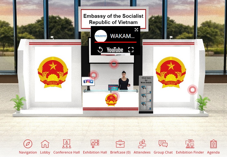 Thương vụ Việt Nam tại Ấn Độ thiết kế gian hàng 3D trực tuyến để hỗ trợ doanh nghiệp Việt Nam quảng bá hàng hóa và hình ảnh tại Hội chợ. Công ty Wakamono tại Thành phố Hồ Chí Minh quảng bá sản phẩm khẩu trang nhãn hiệu Anti Corona Virus Surgical Mask, theo quảng cáo của Công ty sản phẩm này được chứng nhận diệt 99% Virus Sar-Cov-2./.