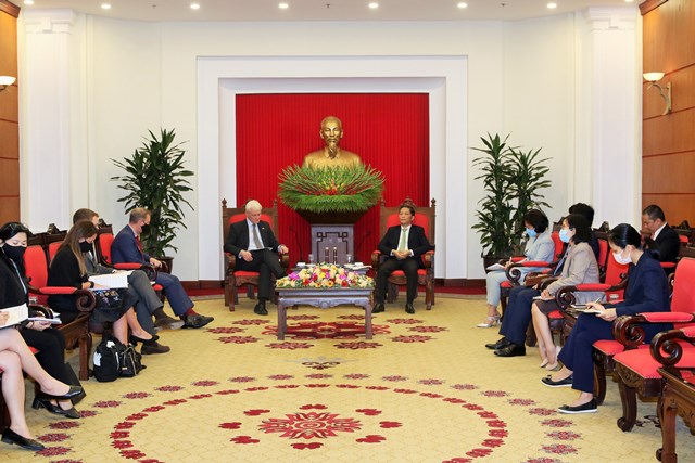 Ông Graham Stuart bày tỏ vui mừng trước những kết quả tích cực về trao đổi thương mại giữa hai nước kể từ khi Hiệp định thương mại tự do Việt - Anh (UKVFTA) có hiệu lực; cảm ơn Việt Nam ủng hộ Anh gia nhập Hiệp định Đối tác toàn diện và Tiến bộ xuyên Thái Bình Dương (CPTPP); hoan nghênh các cam kết mà Việt Nam đưa ra tại Hội nghị lần thứ 26 các bên tham gia Công ước khung của Liên hợp quốc về biến đổi khí hậu (COP26); khẳng định tiếp tục hỗ trợ và hợp tác chặt chẽ với Việt Nam trong quá trình triển khai các cam kết này.