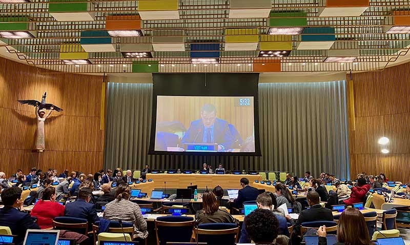 | Đại sứ Đặng Hoàng Giang, Trưởng Phái đoàn thường trực Việt Nam tại Liên hợp quốc phát biểu tại hội nghị |